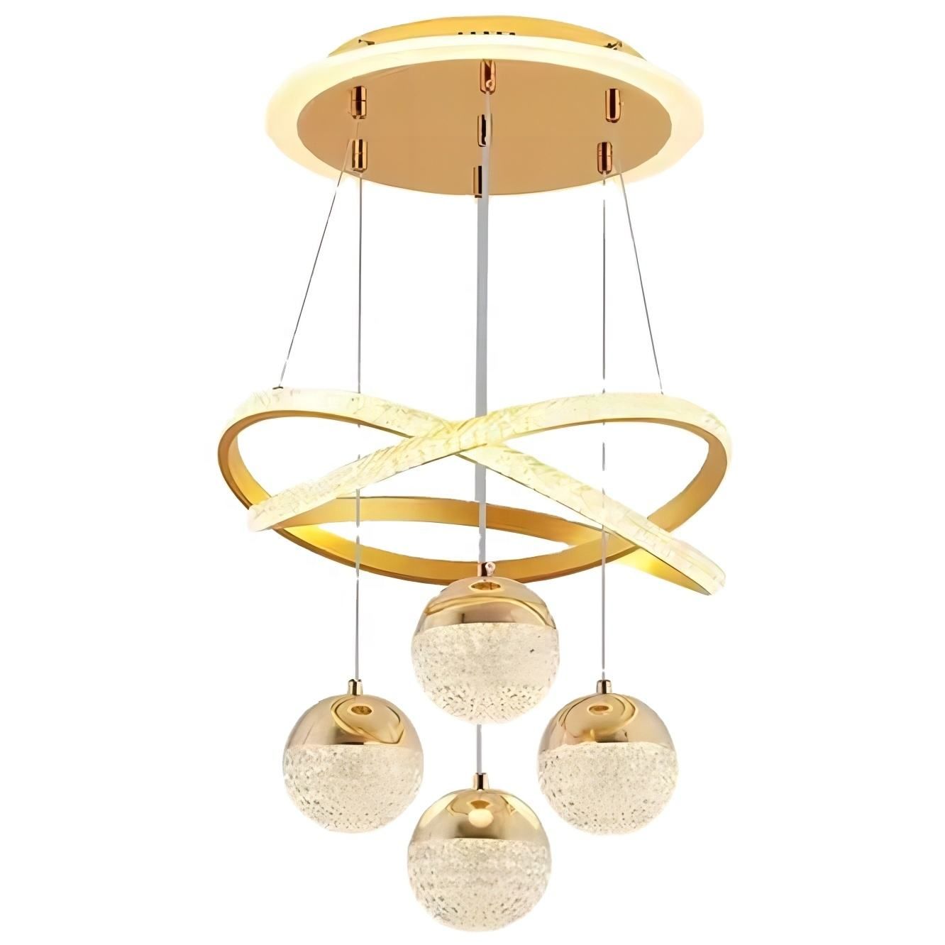 Decoration Home Iron Aluminum Acrylic Staircase Led Chandelier with Balls for Nordic Minimalist Luxury Living Room Restaurant