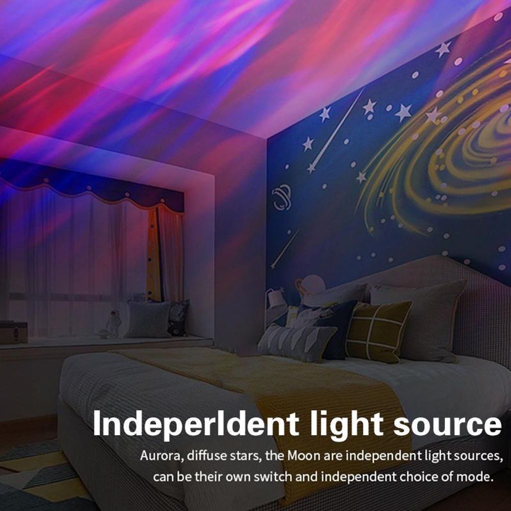 USB LED headboard with water ripple pattern, romantic bedroom atmosphere, stage effect, rotating aurora print, remote control.